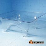No processo de termoformagem não necessita secar a chapa. Necessita de menor temperatura do forno e se processa mais rápido que o Acrílico e o Policarbonato.